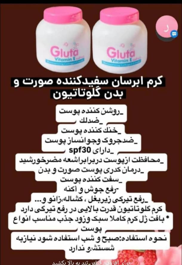 ✨حاوی ترکیب فوق العاده تاثیر گذار گلوتاتیون،ویتامین E و کلاژن هیدرولیز شده