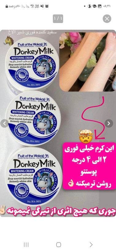 کرم مرطوبکننده و سفیدکننده شیر الاغ محصولی منحصر به فرد و طبیعی بوده که از شیر الاغ، مادهای بسیار گرانبها و سرشار از خواص مغذی، تهیه میشود. این کرم، با نفوذ به عمیقترین لایههای پوست، طراوت و شادابی را به ارمغان خواهد آورد و با تغذیه و آبرسانی پوست، ظاهری جوان و درخشان به شما هدیه میدهد.